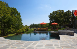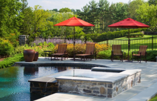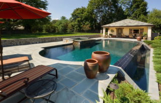The finished product is a masterpiece. The pool features a spectacular 54-foot negative edge, offering a breathtaking view of the meadow below. The landscape designer praised the seamless transition from the 100-year-old home to the newly installed pool and surrounding area. The result is an extraordinary destination area that the family can enjoy, perfectly blending historical architecture with modern functionality.