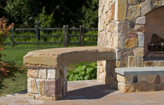 As the pool project concluded, the homeowners planned another project: renovating an existing patio and adding a second patio and staircase. This new addition included a custom-built stone fireplace and benches, creating a highlight in the space.